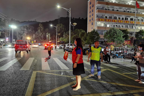 币游国际党团志愿者分队队员现场维护交通秩序
